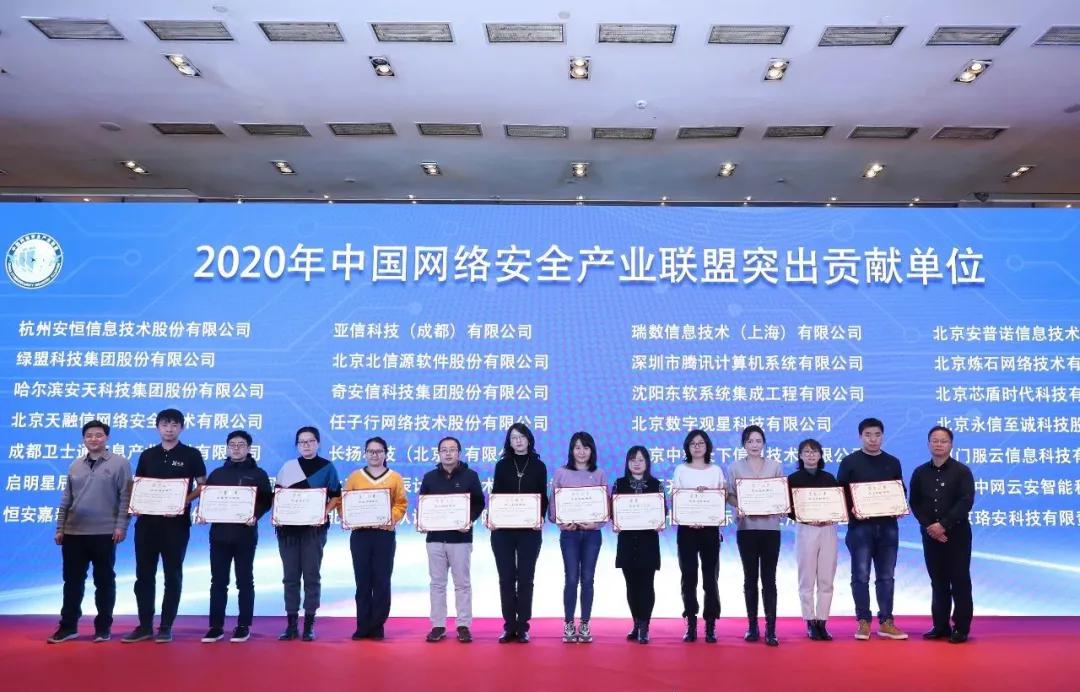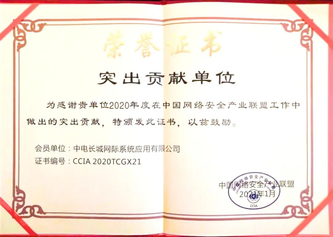 长城网际喜获中国网络安全产业联盟“突出贡献单位”荣誉证书